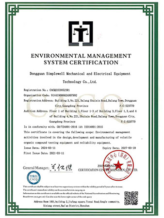 Simplewell es una empresa especialista en la fabricación deequipos de prueba desde hace más de diez años. Ofrecemos una gama de instrumentos de prueba como equipos de prueba ambiental simulada, cámaras de pruebas de emisión de formaldehído/COV y equipos de pruebas de fiabilidad de automoción. A lo largo de los años hemos adquirido una amplia experiencia en la fabricación e instalación de instrumentos de prueba no estándar a escala.